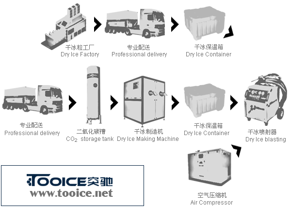 干冰清洗的優(yōu)勢: 1、清洗效果好:干冰清洗較手工清洗、化學(xué)清洗,玻璃微珠清洗效果要好、時間要短。與噴砂清洗比較,沒有二次清洗和模具磨損問題。 2、經(jīng)濟效益明顯:干冰清洗較傳統(tǒng)的化學(xué)清洗、玻璃微珠噴砂清洗等方法,成本下降30-50%左右。據(jù)廠家不完全統(tǒng)計,單臺清洗機在正常清洗頻率(清洗模具量平均值為每周二天、耗干冰100-200kg)情況下,年節(jié)約清洗成本15-30萬元。 3、可在線清洗:可使模具在不拆卸的狀態(tài)下進行直接噴射清洗。這一點在熱芯盒模具清洗時尤其突出,節(jié)省了模具降溫、拆卸、安裝、加熱等環(huán)節(jié)和時間,提高工作效率和大大簡化模具清洗工作程序。同時還節(jié)省了能源。 4、縫隙和隱蔽處清洗:對模具的排氣孔(塞)和局部凸凹變化復(fù)雜、活塊、捌角等處,有無可替代的效果。干冰清洗對φ0.7mm以上排氣單孔(孔深50以上)可直接洗透。 5、對模具表面無磨損:與手工清洗機噴砂清洗而言,干冰清洗對模具無任何磨損和其它負面影響。這樣對極其昂貴的鑄造模具來說,可提高使用壽命近一倍,其帶來的效益是可觀的。 6、無二次清洗的需要:對化學(xué)清洗而言需進行二次清洗,去除化學(xué)清洗劑對模具表面的附著和腐蝕及對砂芯表面帶來的負作用。對噴砂清洗來說,除了嚴重的磨損之外,還有需二次清洗以去除模具表面浮塵和劃傷。因干冰產(chǎn)品獨特的升華作用機理,故而不會留下任何需二次清洗的物質(zhì)。在模具經(jīng)一次噴射清洗完畢后可直接投入使用。 7、綠色環(huán)保清洗:干冰清洗與其它清洗方法比較而言,具有對人體無刺激、無毒害、不燒手。對環(huán)境無污染、無排放限制的優(yōu)點,其材料系取自化工廠排放廢氣(CO2)的二次利用,不會增加向大氣負面作用,是真正意義上的清洗革命。這一點,在整個人類愈來愈重視環(huán)保和可持續(xù)發(fā)展的廿一世紀的工業(yè)社會,尤為重要。